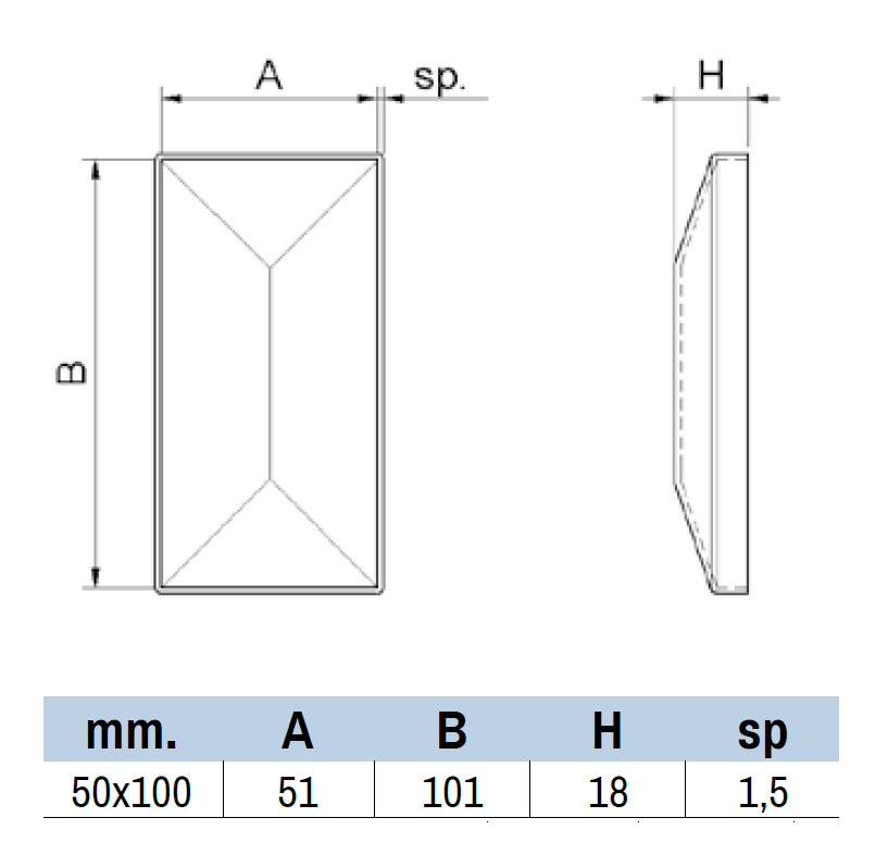 Strieška plechová 50 x 100 x 1,5 mm, pozinkovaná
