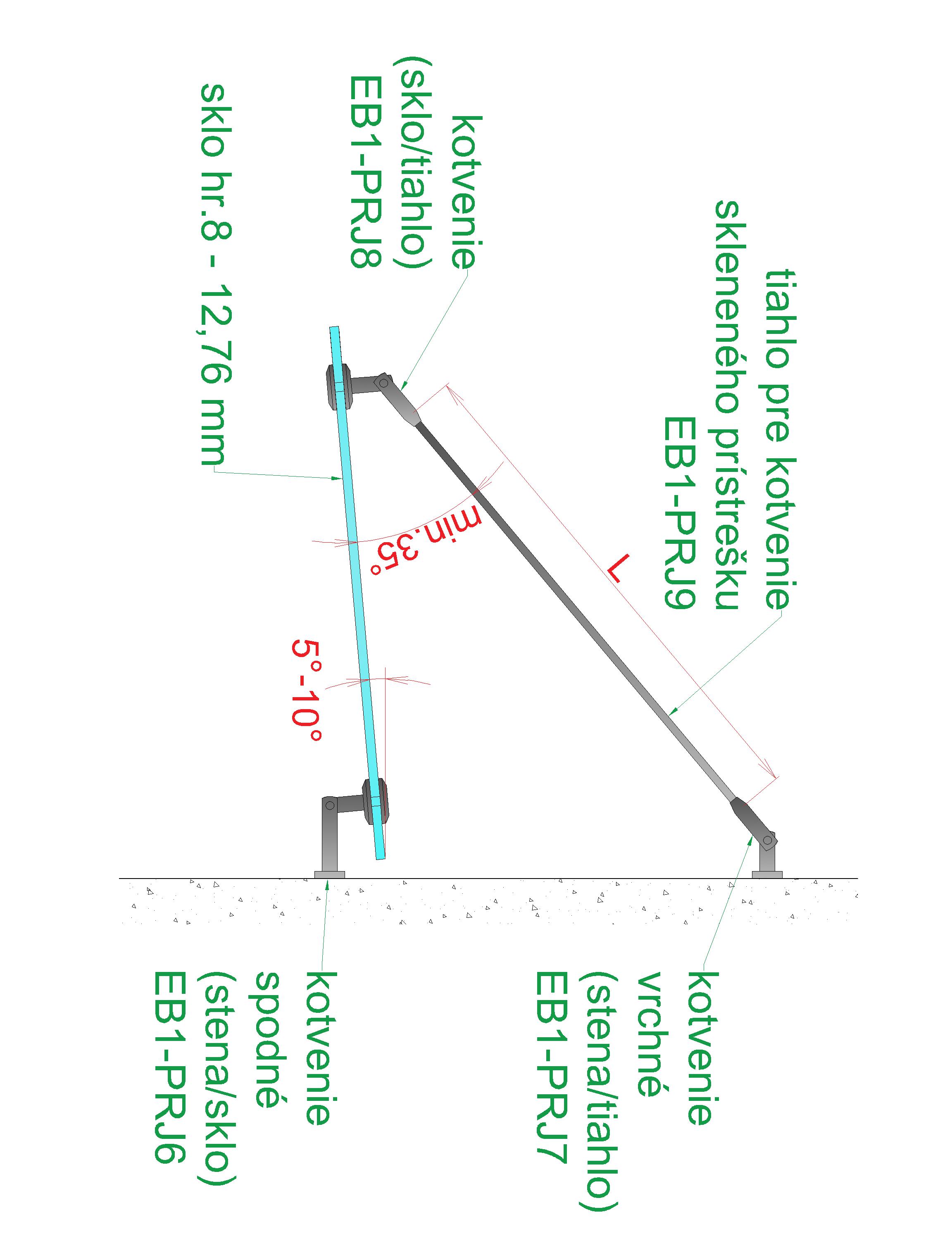 Tiahlo pre kotvenie skleneného prístrešku, brúsená AISI 304