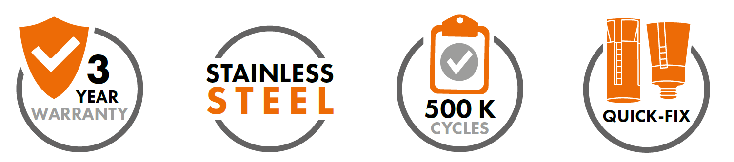 - Rýchla montáž skrutkami LOCINOX® QUICK-FIX z nehrdzavejúcej ocele (súčasť balenia)