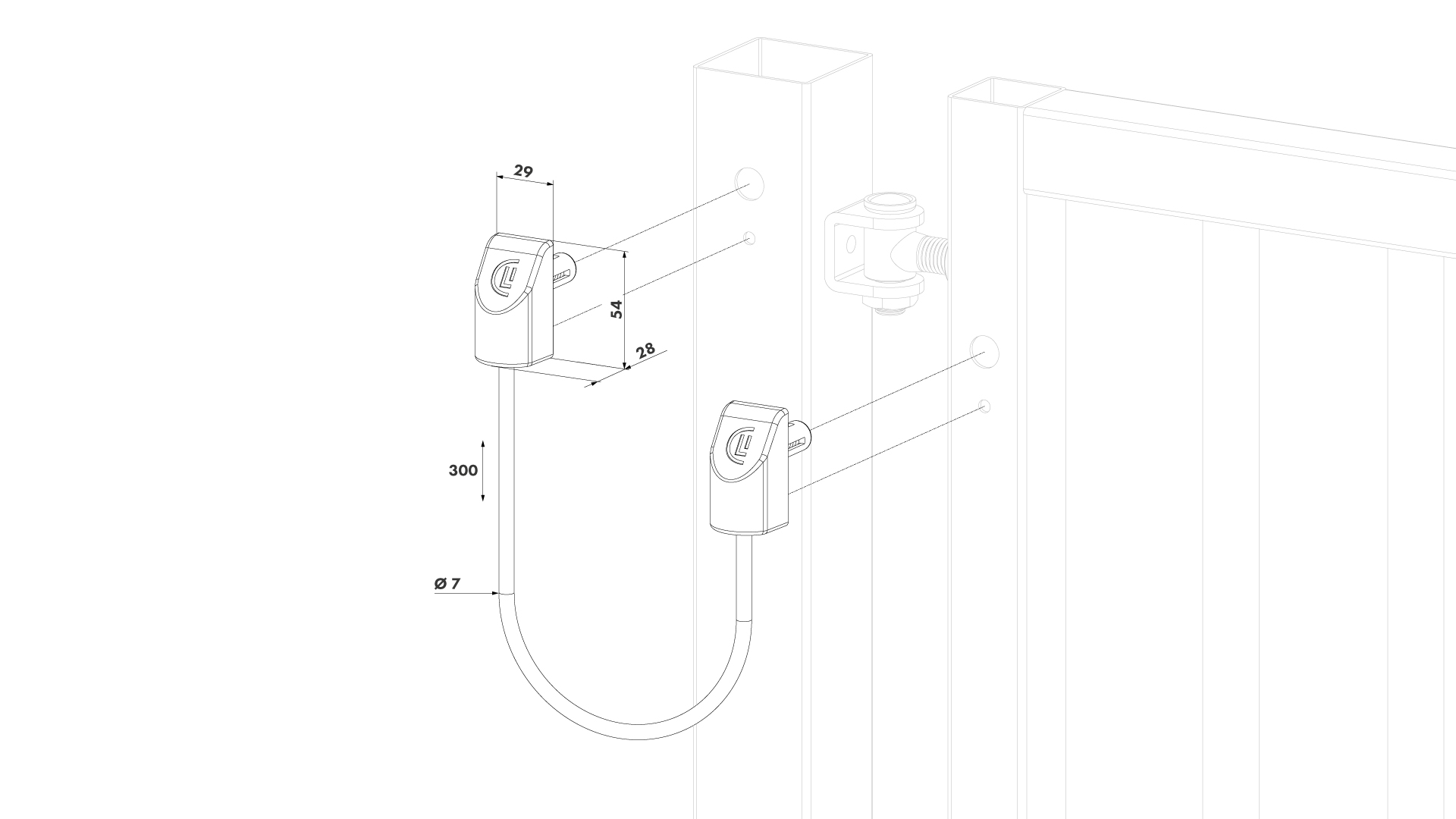 Bezpečnostné lano pre krídlove brány do 500 kg, L = 300 mm
